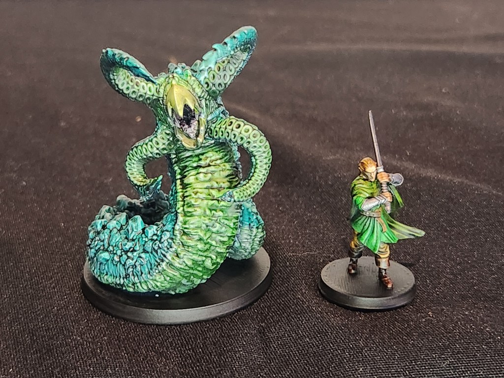 I got a couple of miniatures from The Printing Goes Ever On painted this week. Both of these models are printed in resin. I used acrylic inks on the Grick and the elf was done using speed paints over a zenithal highlight.