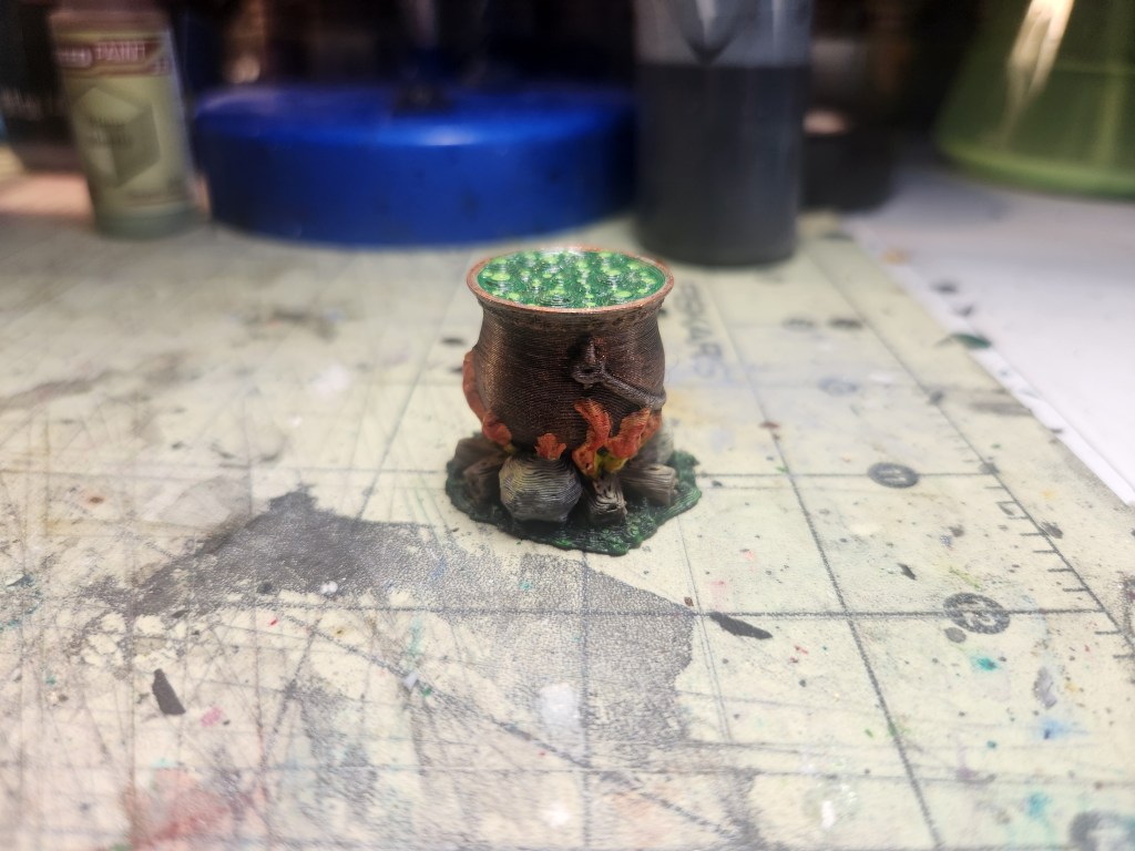 Here is a bubbling cauldron from Brite Minis. I painted this model and the dungeon sticks while filming myself painting. That was an adventure! I will edit and post it for anyone who wants to watch it on my YouTube channel.