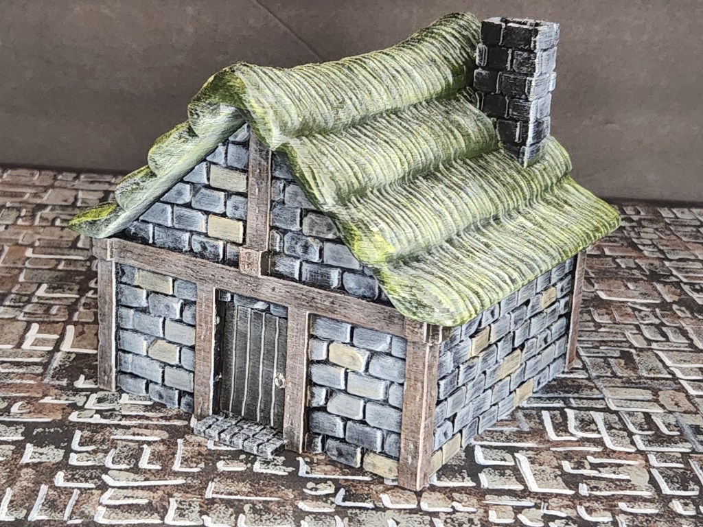 I also finished this small cottage. This would look good on the table for a village cottage or part of a fantasy wargame table. It started with a dry brush, some craft paints, and India inks, and it is complete. I recorded the process for this as well, which should be in an upcoming video.