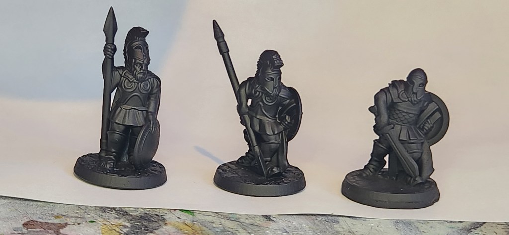 Here are some Greek warriors from Brite Minis. I am going to use these for soldiers in my Shdaowdark campaign (if I ever get a chance to run it).