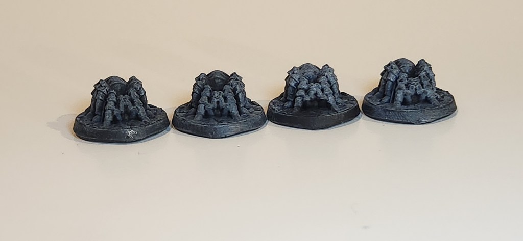 The four giant spiders. The models are from Brite Minis.