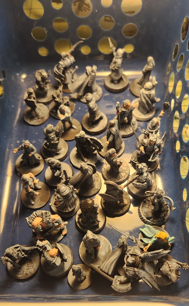 Here are the miniatures that I have started to paint. I have at least this many miniatures in another basket that are off the FDM printer that still need highlights before I paint them.