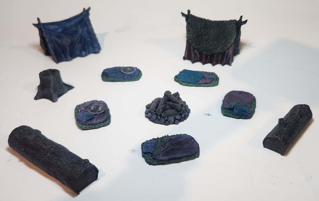 I was able to print and paint another campsite. The models are from Fat Dragon Games. I will place these in my Etsy store.