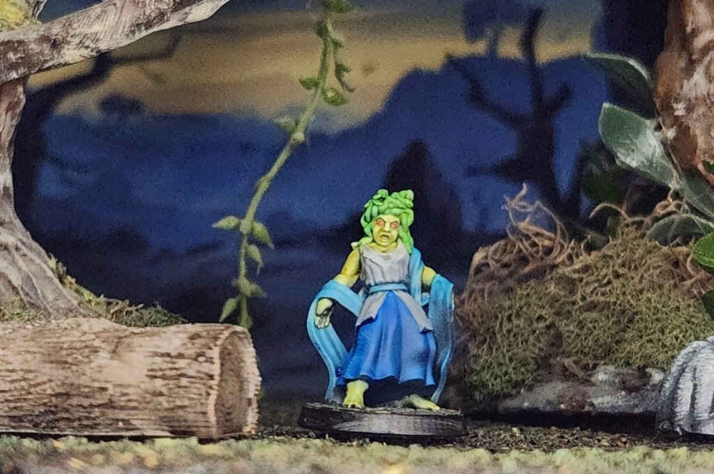 This model is from Brite Minis and was printed in resin. I like the colors I went with and think she would be a great foe for the tabletop. She is the first of the “snakepeople” that I have finished but there are more in process.