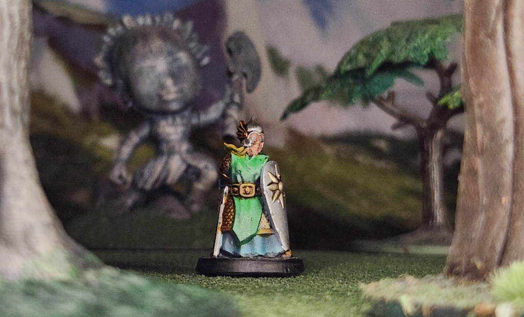 This elf model is from Brite Minis and was printed in resin. I like how the gold chain mail turned out. It looks even better in person. The skin tones are about where I want them. I am going back over skin with white primer, then using a tan flesh miniature paint, followed by a flesh wash.