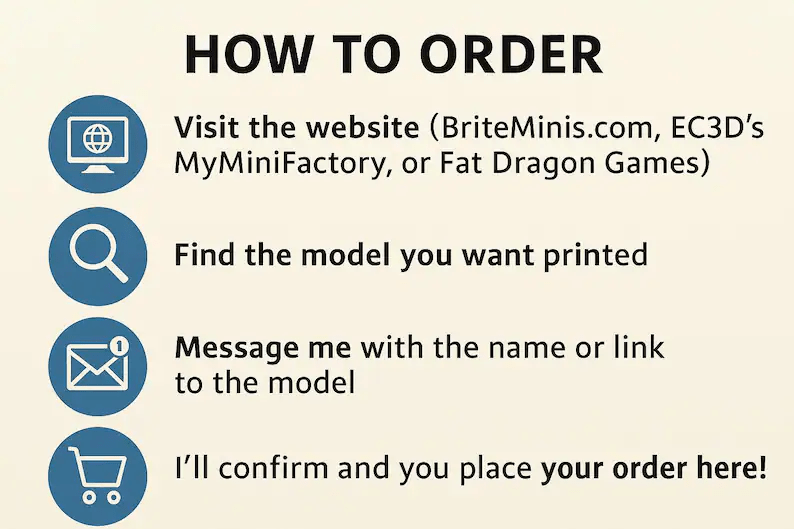 I am also getting set up for print-on-demand miniatures. If you see a miniature that you like from one of these creators, please let me know, and I will see about getting it printed out for you. I am trying to keep the price down to sell more. I really want to help players get miniatures to grow the hobby. I just need to make sure I cover the costs.