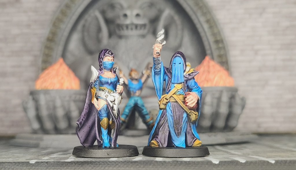 Both of these miniatures are from EC3D Design’s Beasts and Baddies Vol 2 collection. Since they are in the same cult, I tried to keep the colors the same. The male cultist gives off a Cobra Commander vibe with that mask.
