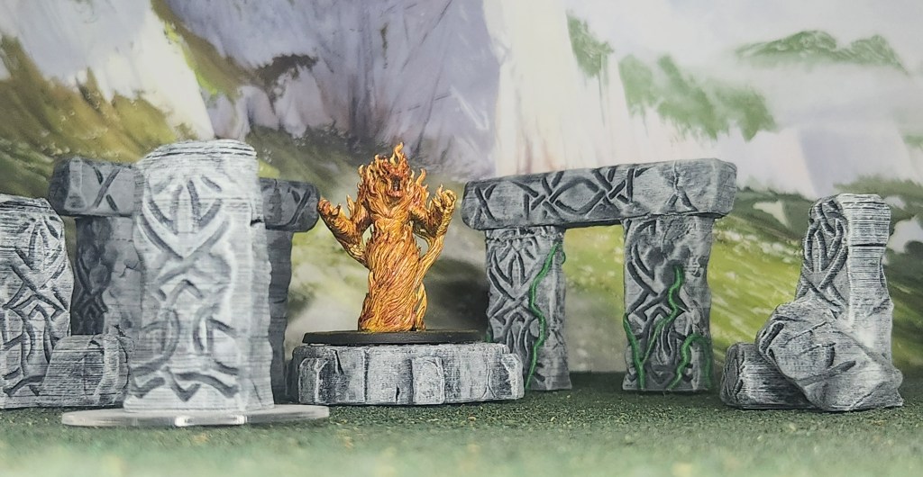 I finished up an Earth and a Fire Elemental from EC3D Designs. I believe both of these models are from the Bests and Baddies Vol 2 Collection as well. I attempted to apply OSL (Object Source Lighting) to the base of the Fire Elemental, but I wasn’t satisfied with the final result, so I didn’t include it here. That is another technique that I need to work on.