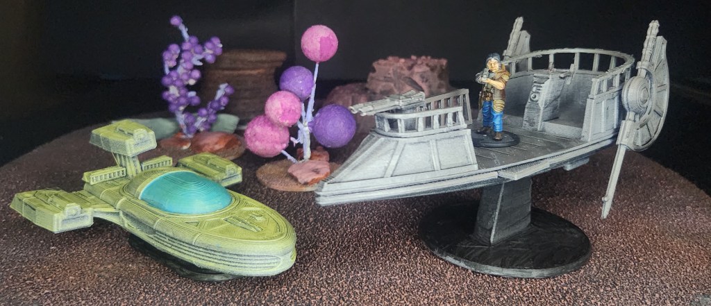 I printed out a few Sci-Fi vehicles this week and painted them up. These models are from EC3D Design. They have a Star Wars feel to them.