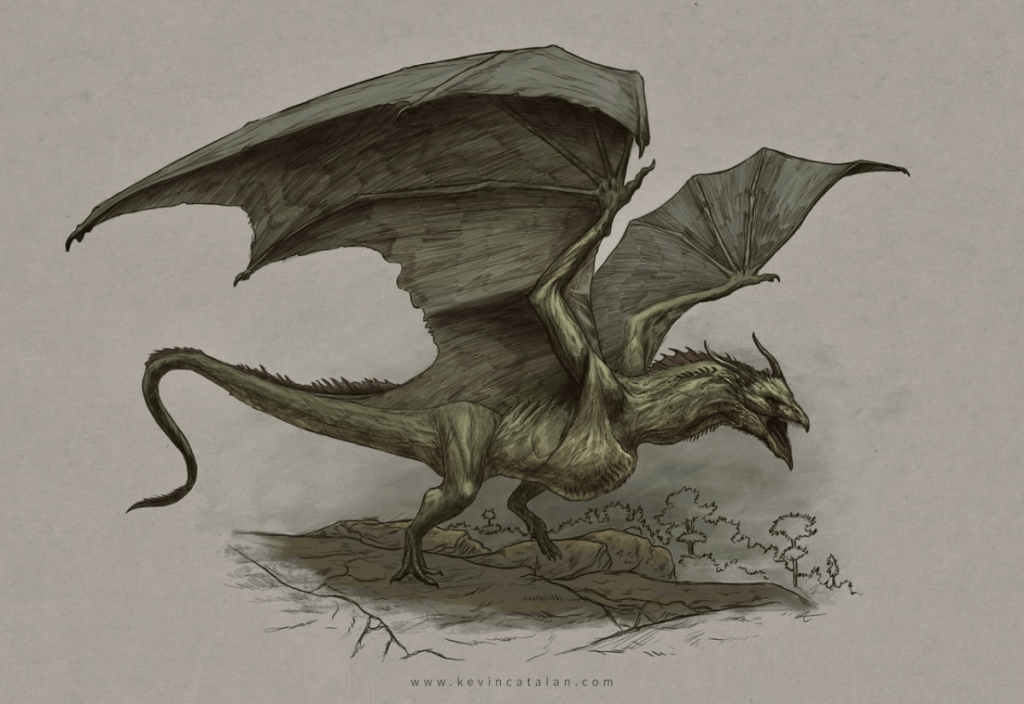 - A vast shadow sweeps across the grass, followed by the beating of enormous wings.