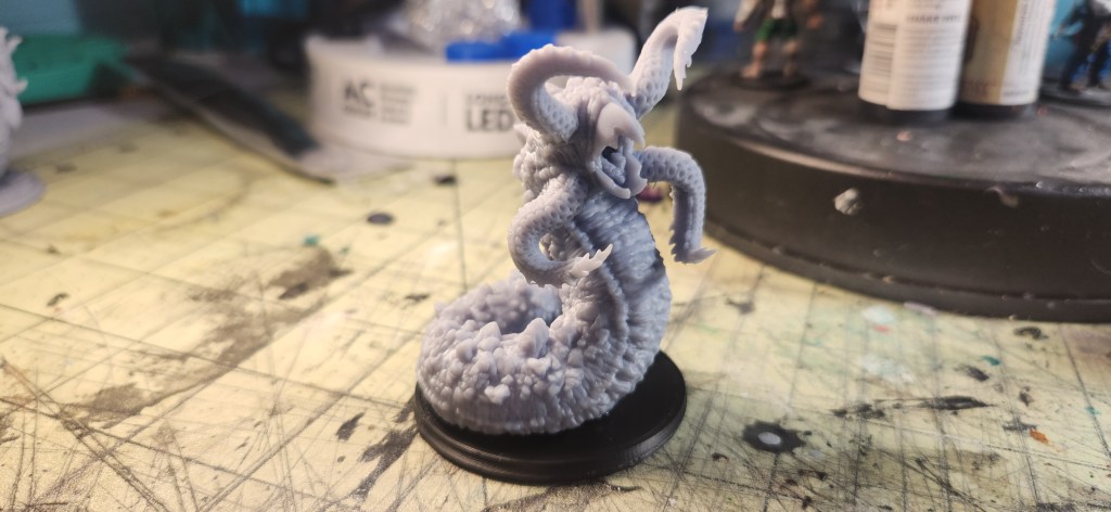 Here’s a Grick from The Printing Goes Ever On. I was really happy with how the last one turned out, so I’m aiming to recreate that same look with this print. Can’t wait to see it fully painted—it’s such a perfect little horror for dungeon encounters or dark fantasy tables!