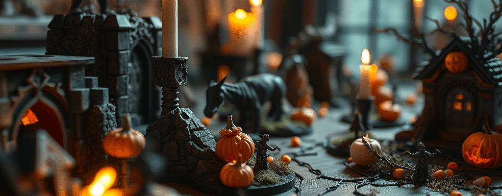If you’ve got painted terrain or 3D printed pieces, this is your moment. Creepy crypts, pumpkin patches, and foggy ruins look amazing under dim lighting.