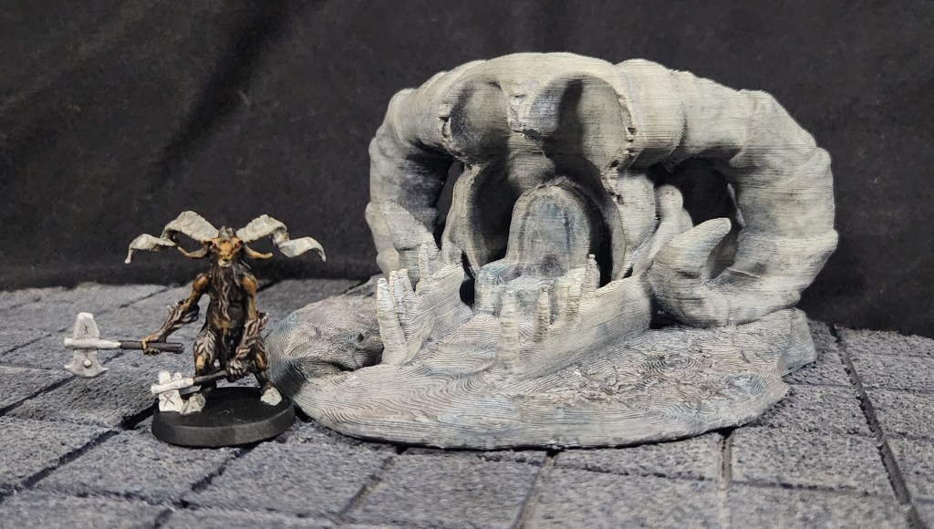 I finished painting another Skull Throne this week. I started with an overbrush of pewter gray, then added depth and interest by stippling in a few different colors to bring more life to the piece. The skulls were finished with an ivory dry brush, followed by a light gray dry brush over the rest of the throne. It was a quick and easy paint job, but one that still looks great on the table.