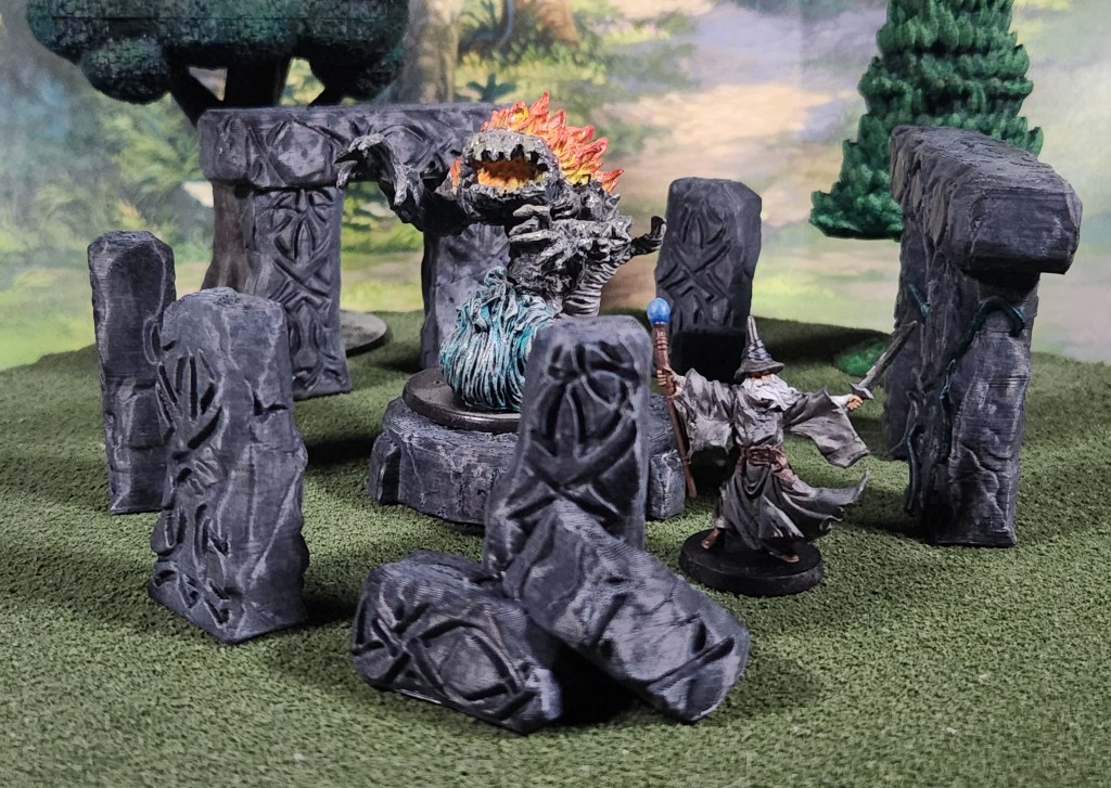 I also got another Druid Circle painted up this week. I started with a white dry brush over black, followed by green ink on the vines to make them pop, and finished it all off with a black wash to tie everything together.