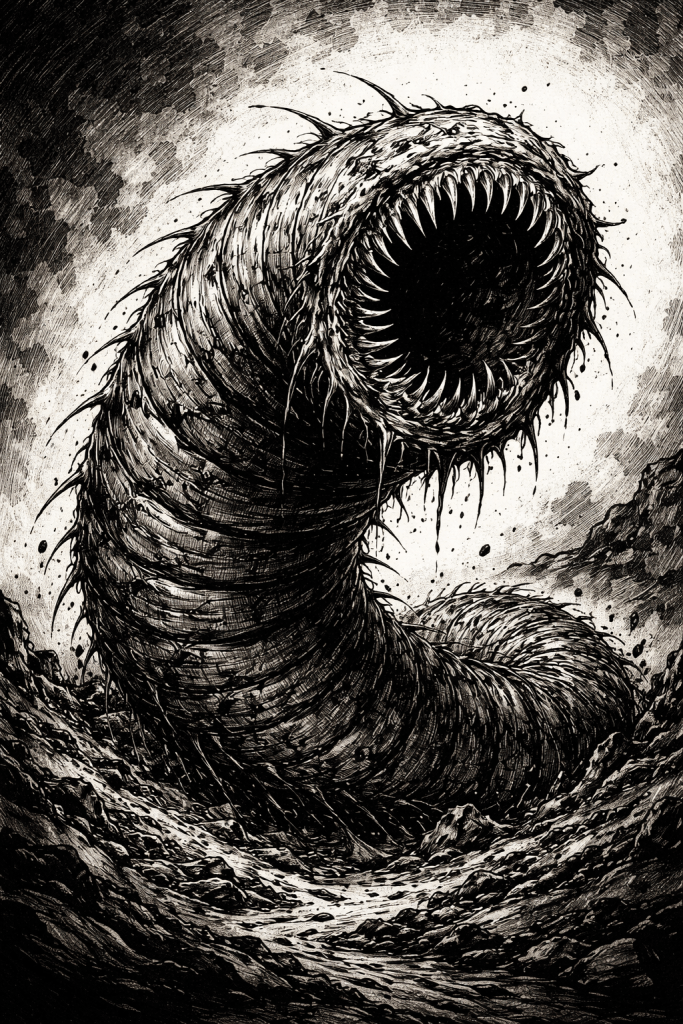 Beneath a quiet village’s fields, something ancient stirs. Tremors ripple through the soil, livestock vanish, and the earth groans with unseen pressure. Villagers whisper of a monster that senses vibration itself — a thing that strikes without warning and burrows away into the dark before its victims can react.