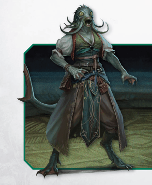 Deep spawn are shapeshifting fish-creatures who look human until submerged in water. Most serve evil entities of the deep, though some escape to live as adventurers.