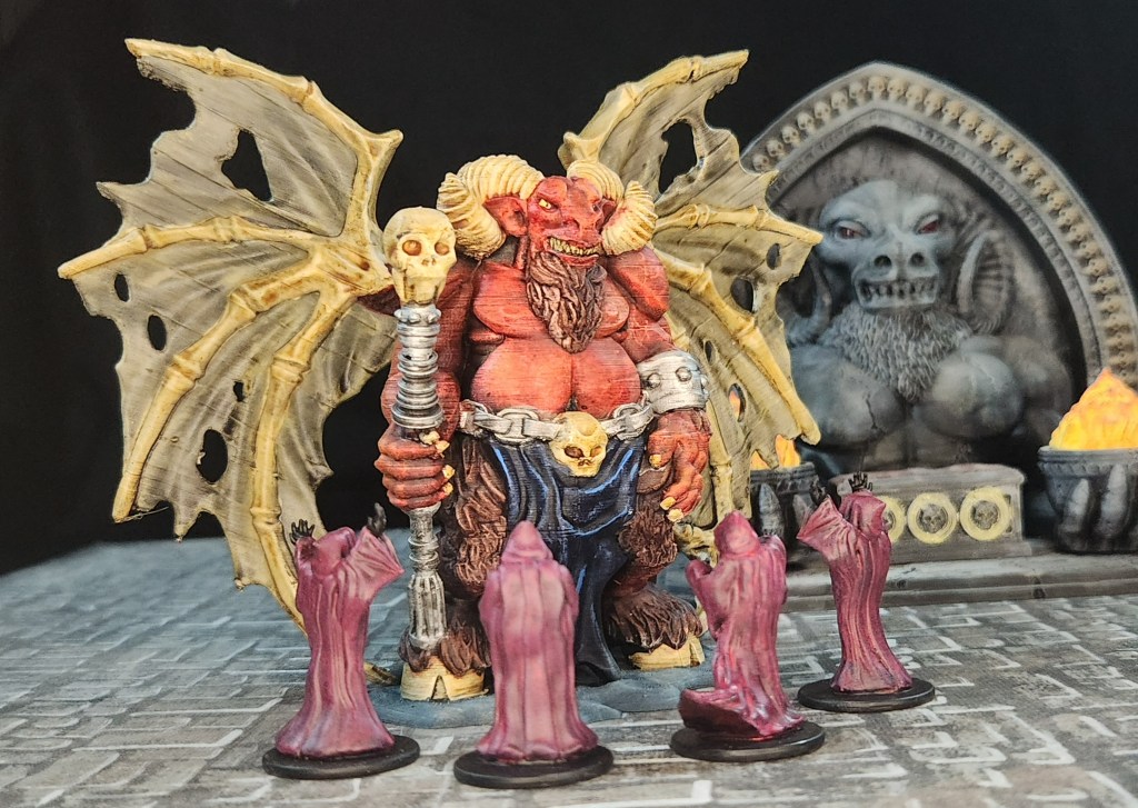 From there, it was mostly letting the paints do their magic and building up the colors. I’m really happy with how he turned out—the details popped nicely, and he has a great tabletop presence. Not bad for a demon lord straight off the printer!